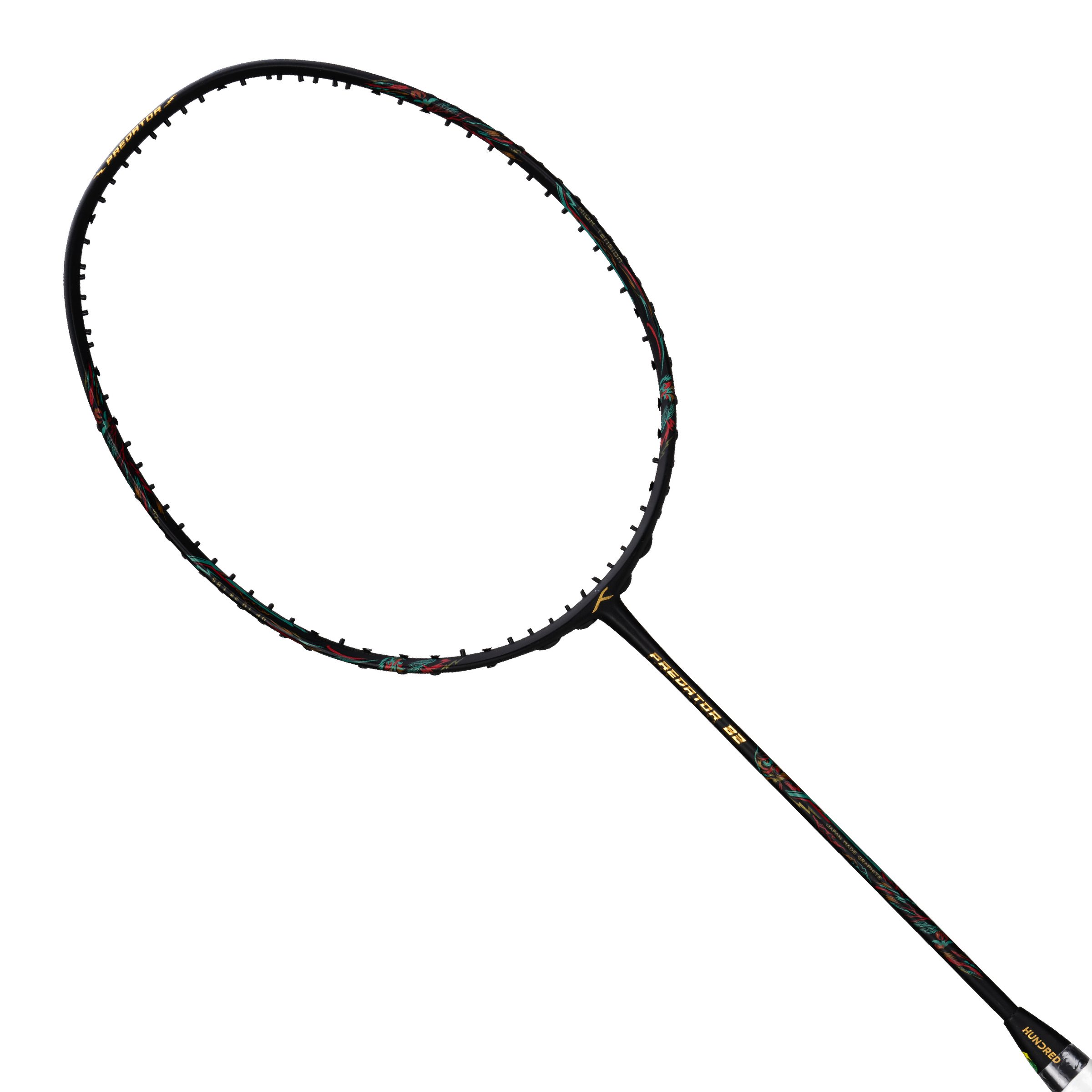 Unleash fierce attacks with the Hundred Predator. This lightweight racket packs a powerful punch with its Japanese graphite carbon frame engineered for aggressive play. The vapor shaft provides optimal flex and torque resistance for smashing, while the head features Curve2 technology for an extra-sweet spot and unmatched strength.